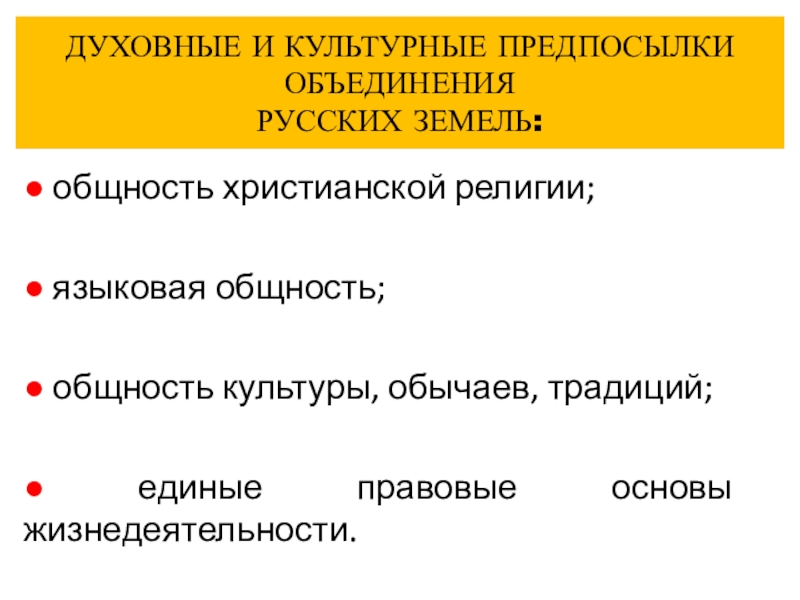 Слайд 8ДУХОВНЫЕ И КУЛЬТУРНЫЕ ПРЕДПОСЫЛКИ ОБЪЕДИНЕНИЯ