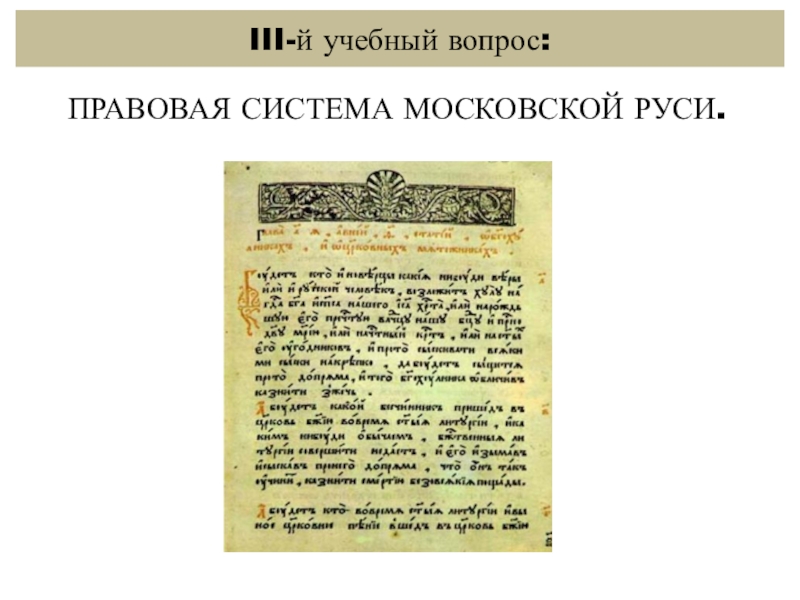 ПРАВОВАЯ СИСТЕМА МОСКОВСКОЙ РУСИ.