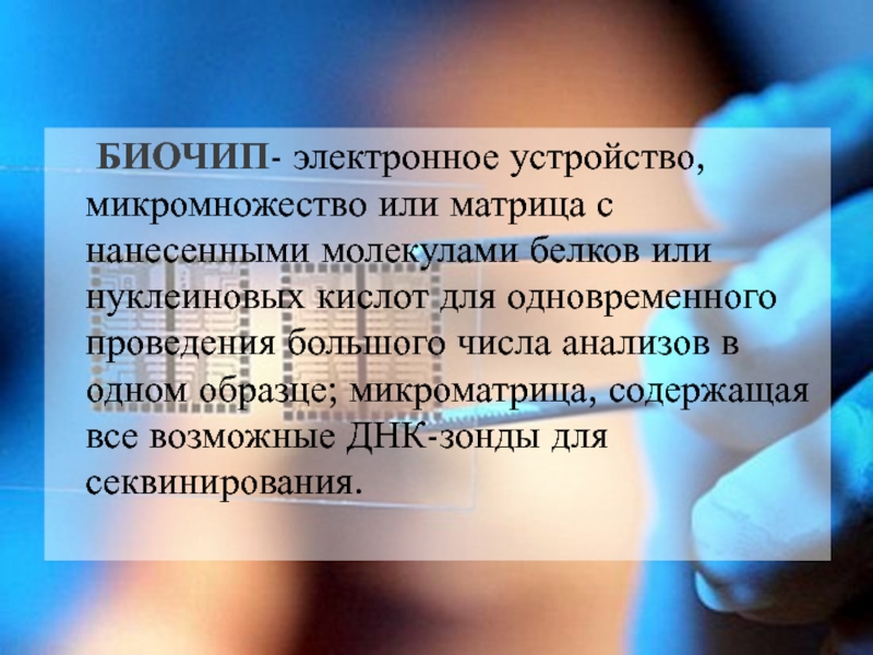 средства на основе достижений биотехнологии. биочипы и биосенсоры.Подготовила: студентка 5 курса ФФМ МГУ им М.В.Ломоносова