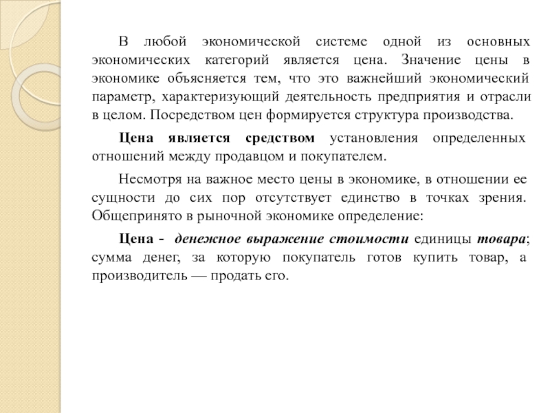 цена. Значение цены в экономике объясняется тем, что это важнейший
