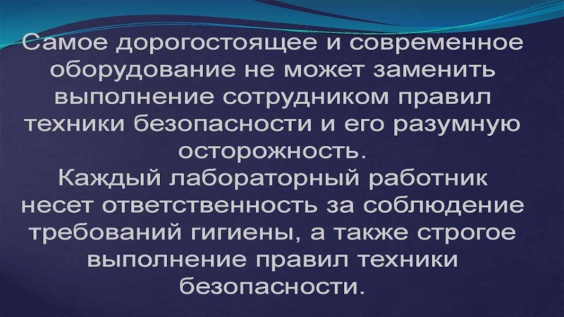 лаборатории нельзя входить без специальной одежды - медицинского халата и шапочки, запрещается приносить в практикум верхнюю одежду. Запрещается посещение студентов, работающих в лаборатории, посторонними лицами. Каждый студент должен работать на закреплённом за ним рабочем месте. Во время работы в лаборатории следует соблюдать тишину, порядок и чистоту.