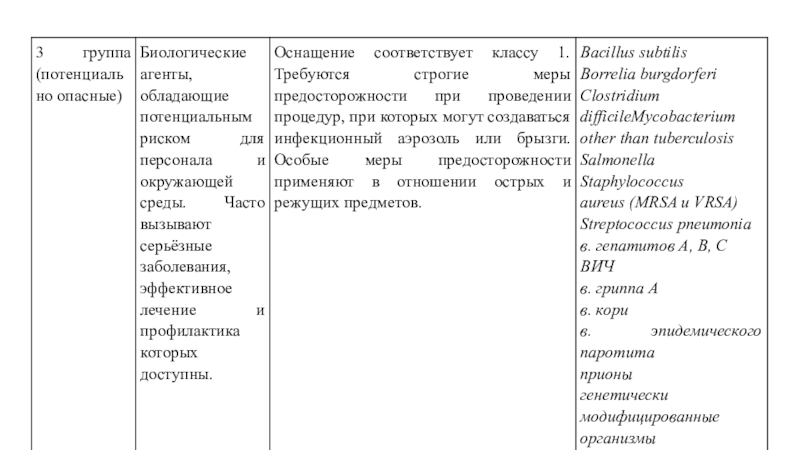 Слайд 10Аттенуированные штаммы возбудителей I–II групп относятся к микроорганизмам III группы