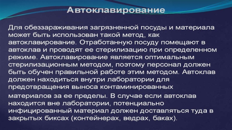 Биологическая безопасность – порядок осуществления лабораторных исследований и специальное оснащение микробиологических лабораторий, которые защищают персонал лабораторий и окружающую среду при работе с потенциально инфекционными микроорганизмами.