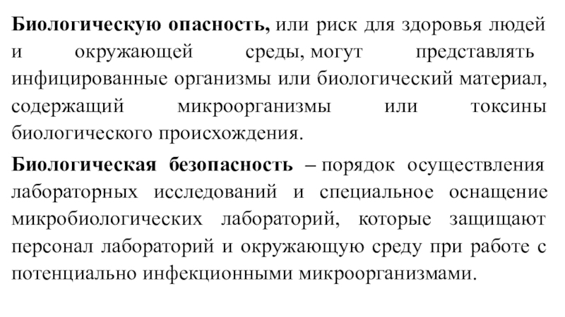 Слайд 3Биологическую опасность, или риск для здоровья людей и окружающей среды, могут представлять