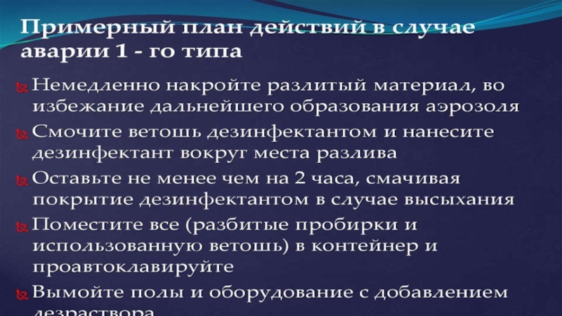 инфицированный материал, или проливании жидкого инфицированного материала надо сообщить преподавателю.