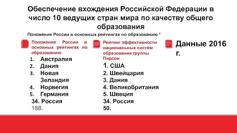 воспитание гармонично развитой и социально ответственной личности, разработка новых программ обучения по индивидуальным планам, новые места для дополнительного образования, центры поддержки для одаренных детей, профориентационная работа
