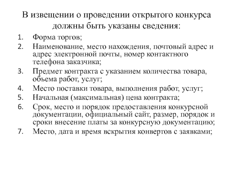 Слайд 97При проведении аукциона участники подают предложения о цене контракта, предусматривающее