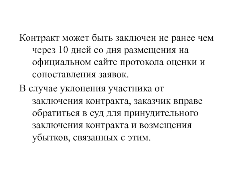 Слайд 100Контракт может быть заключен, не ранее чем через 10 дней
