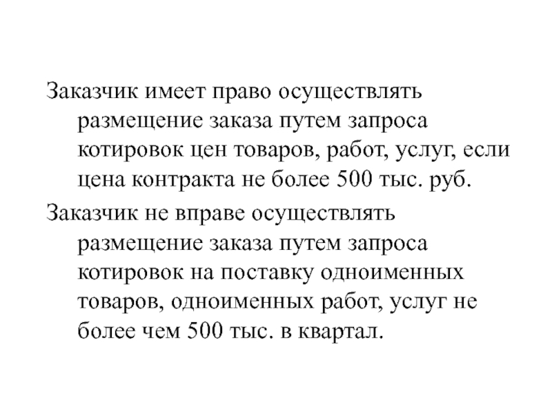 Слайд 102Заказчик имеет право осуществлять размещение заказа путем запроса котировок цен