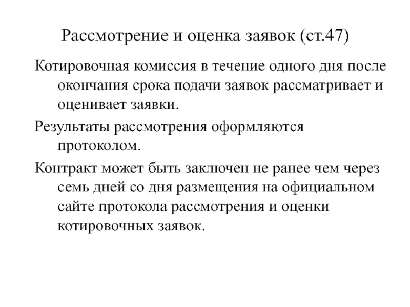 Слайд 108Рассмотрение и оценка заявок (ст.47)