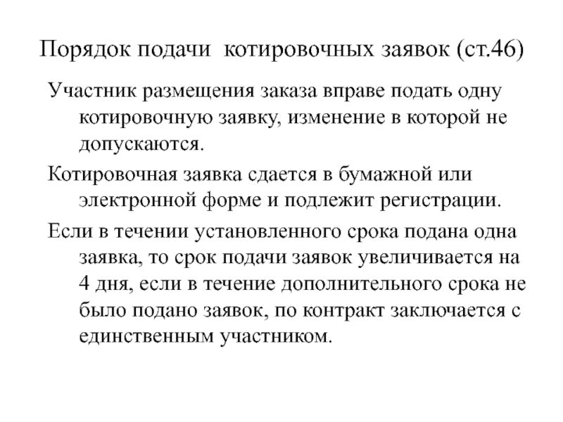 Слайд 107Порядок подачи котировочных заявок (ст.46)