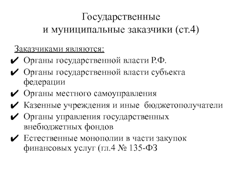и муниципальные заказчики (ст.4)