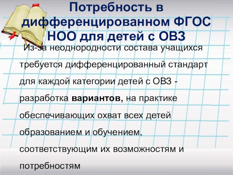 Слайд 4Потребность в дифференцированном ФГОС НОО для детей с ОВЗ