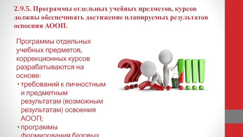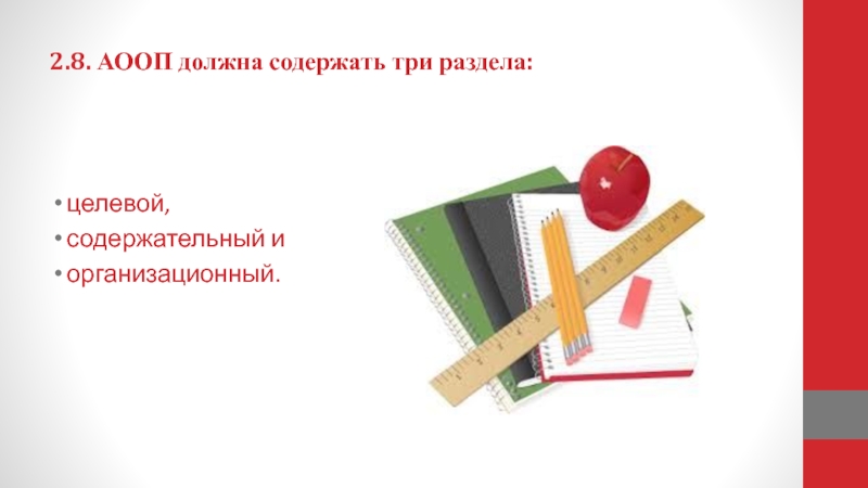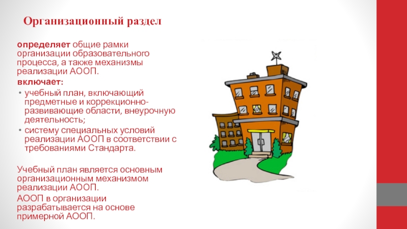 Слайд 106Материально-техническая база реализации АООП должна соответствовать действующим санитарным и противопожарным