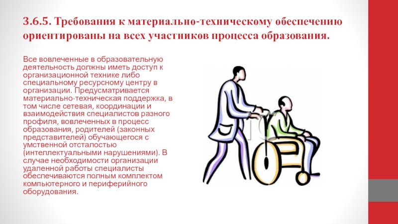 Слайд 1123.6.5. Требования к материально-техническому обеспечению ориентированы на всех участников процесса