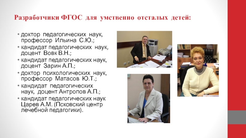 Слайд 9Разработчики ФГОС для умственно отсталых детей: