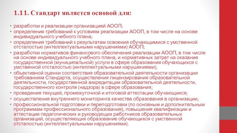 Слайд 161.1. Федеральный государственный образовательный стандарт образования обучающихся с умственной отсталостью