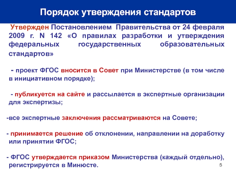 г. N 142 «О правилах разработки и утверждения федеральных государственных