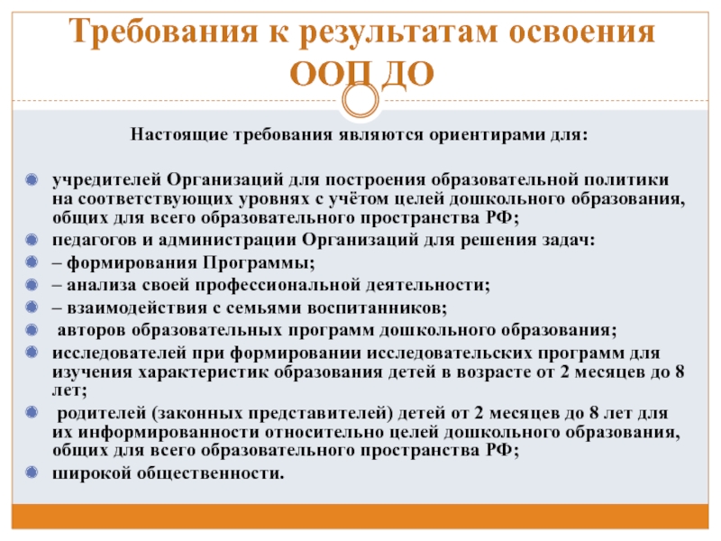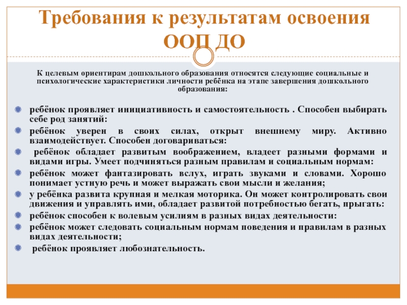 ДОШКОЛЬНОГО ОБРАЗОВАНИЯIV. ТРЕБОВАНИЯ К РЕЗУЛЬТАТАМ ОСВОЕНИЯ ОСНОВНОЙ ОБРАЗОВАТЕЛЬНОЙ ПРОГРАММЫ ДОШКОЛЬНОГО ОБРАЗОВАНИЯ