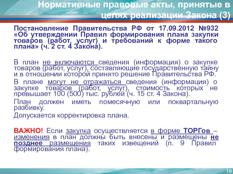 Нормативные правовые акты, принятые в целях реализации Закона (12)