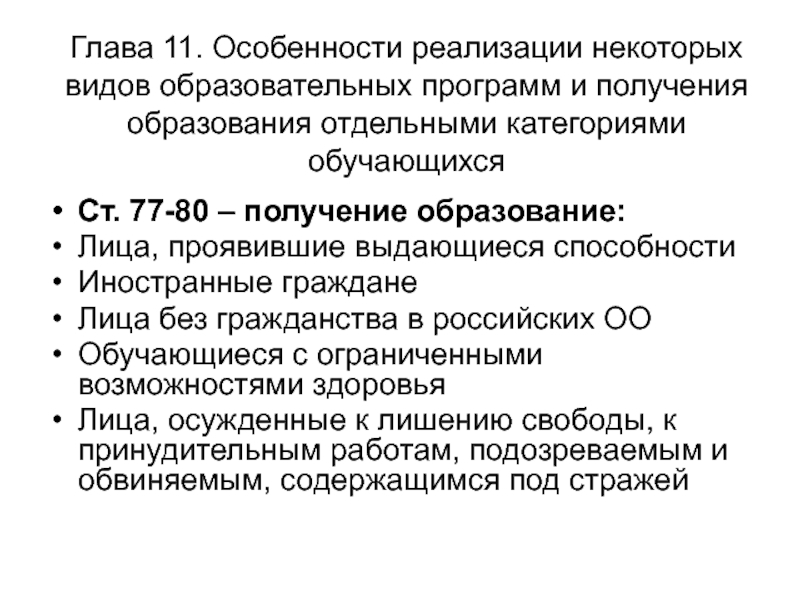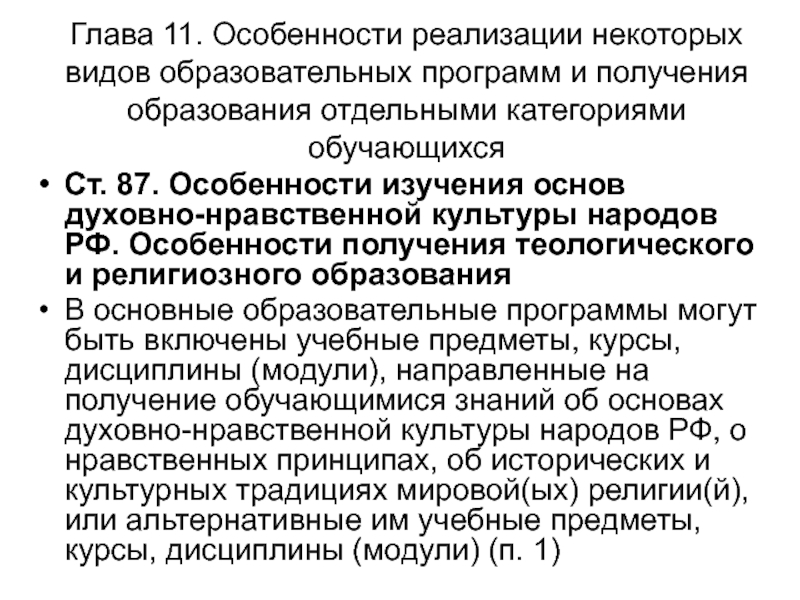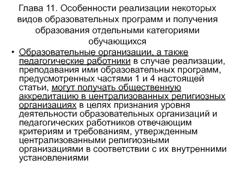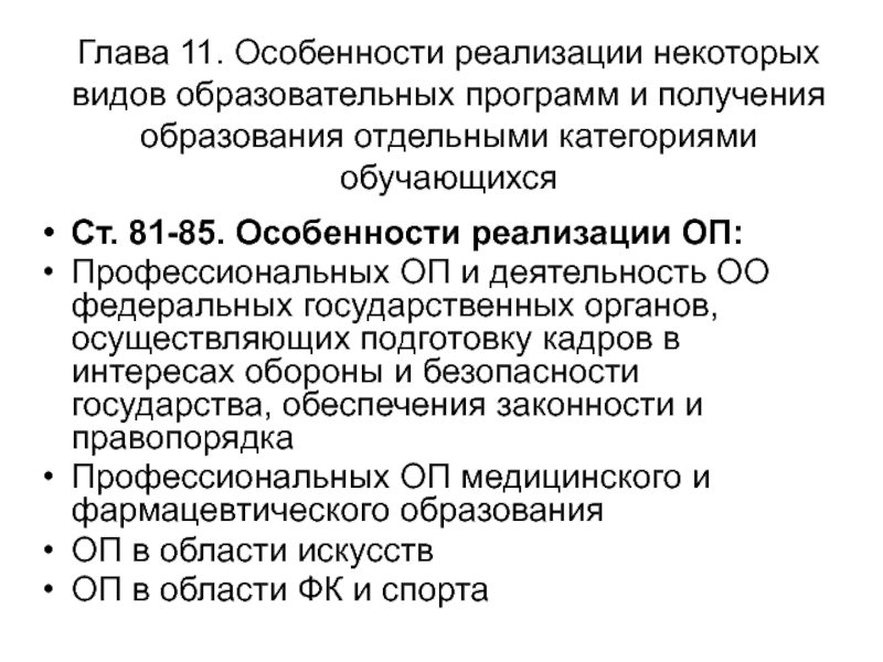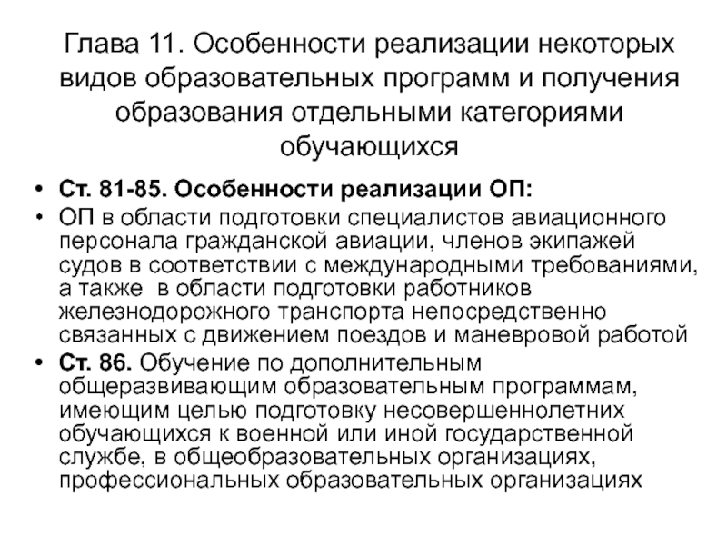 Глава 11. Особенности реализации некоторых видов образовательных программ и