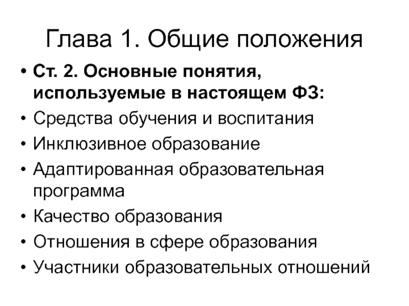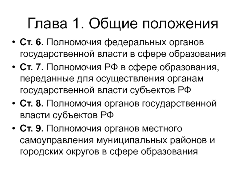 РФ в сфере образования, общие правила функционирования системы образования и осуществления образовательной деятельности, определяет правовое положение участников отношений в сфере образования