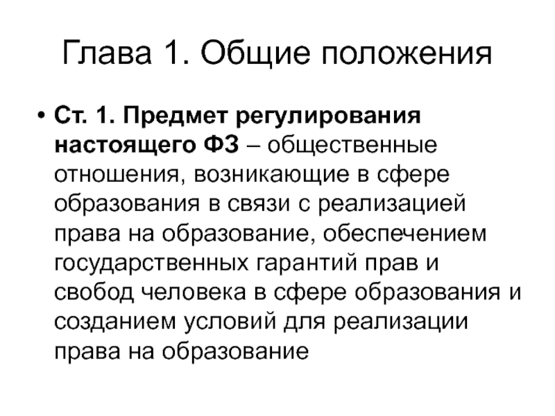 Ст. 1. Предмет регулирования настоящего ФЗ –