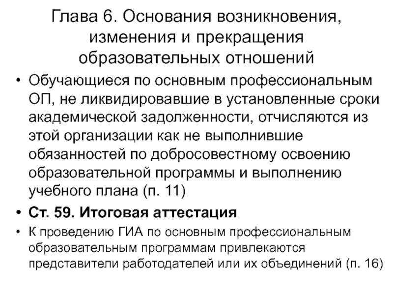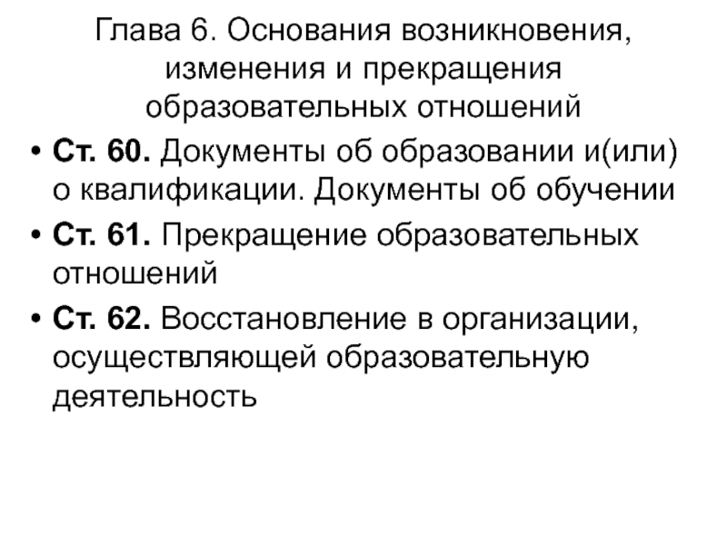 Глава 6. Основания возникновения, изменения и прекращения образовательных отношений