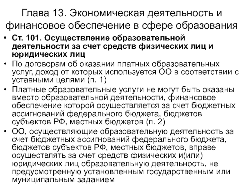 Глава 13. Экономическая деятельность и финансовое обеспечение в сфере образования