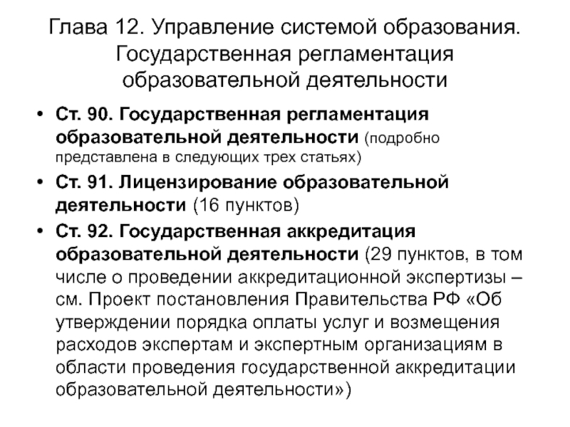Слайд 106Глава 12. Управление системой образования. Государственная регламентация образовательной деятельности
