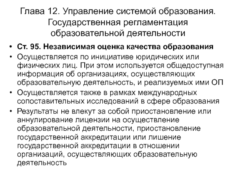 Слайд 105Глава 12. Управление системой образования. Государственная регламентация образовательной деятельности