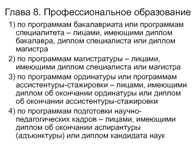 и уровнями образования, установленными настоящим ФЗ (8 уровней) (п. 1)