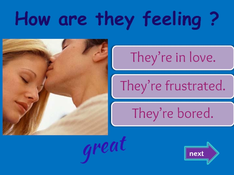 They’re in love.They’re frustrated.They’re bored. nextgreatHow are they feeling ?