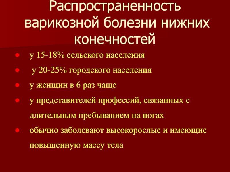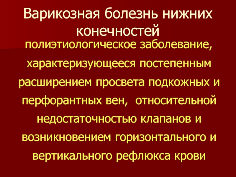 ВАРИКОЗНАЯ БОЛЕЗНЬ НИЖНИХ КОНЕЧНОСТЕЙ,