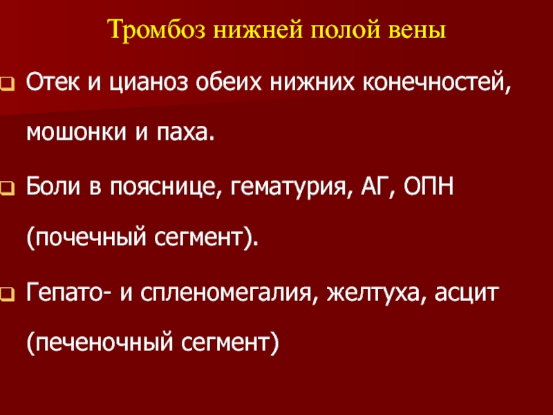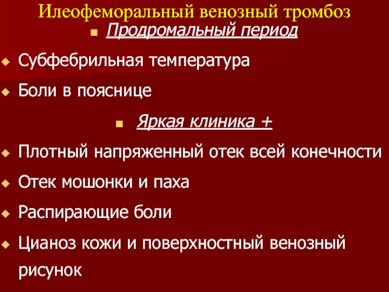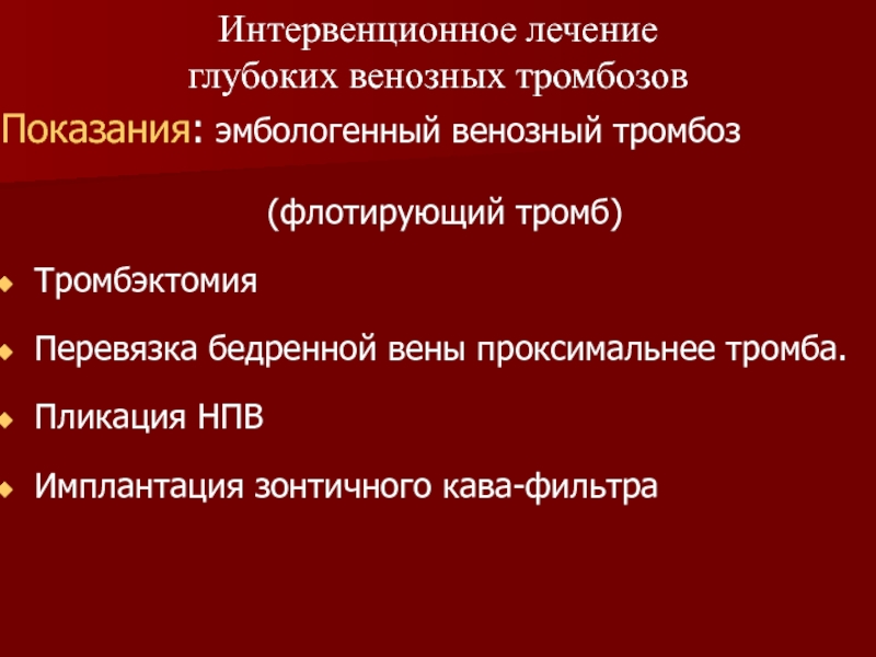 Слайд 77Показания: эмбологенный венозный тромбоз