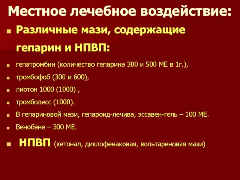 Слайд 72Местное лечебное воздействие: