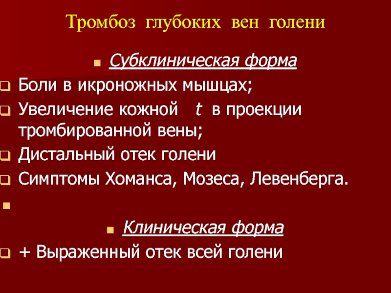 глубоких венозных тромбозов
