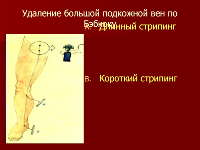 Слайд 65Удаление большой подкожной вен по Бэбкоку