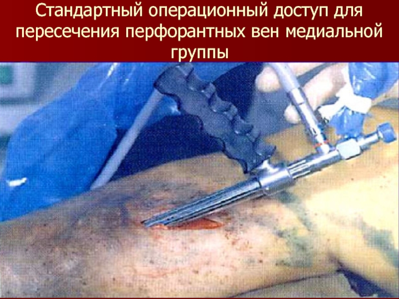 Слайд 67Стандартный операционный доступ для пересечения перфорантных вен медиальной группы