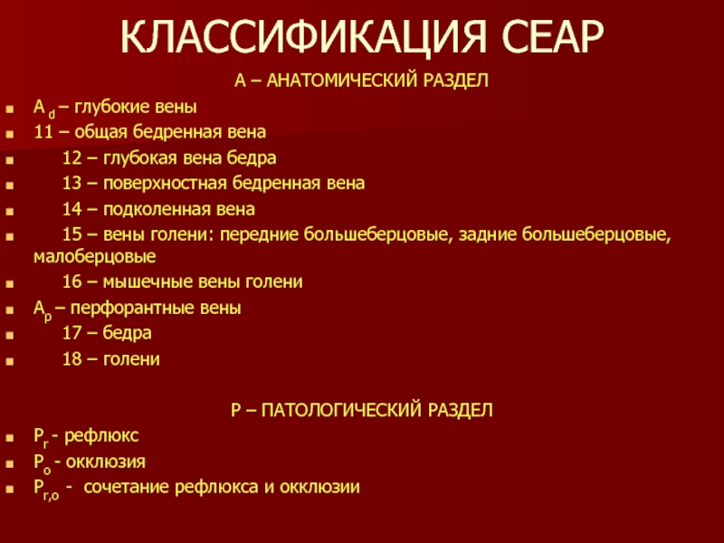 КЛАССИФИКАЦИЯ СЕАР