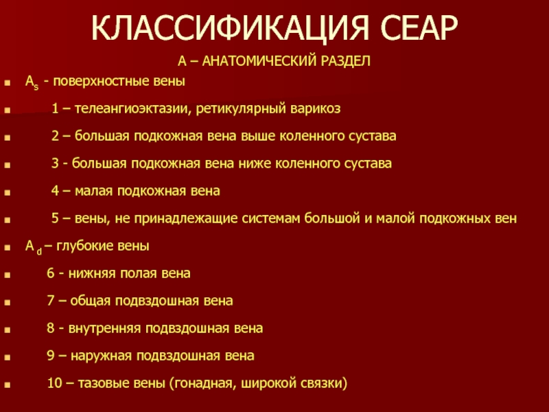 С2 – варикозно- измененные подкожные вены (диаметром 3 мм или более)