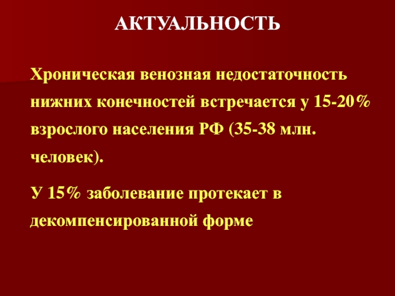 Хроническая венозная недостаточность нижних конечностей встречается у 15-20% взрослого населения