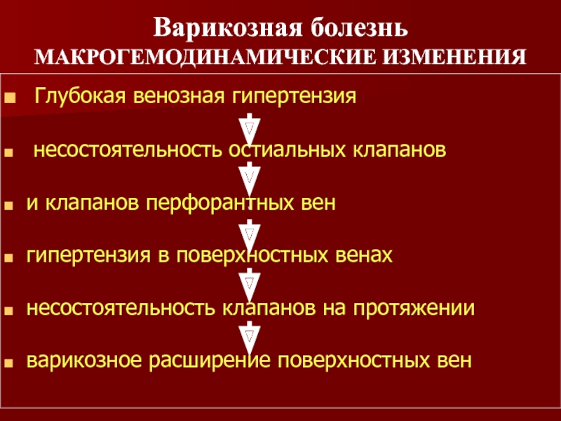 клапанного аппарата магистральных и коммунинантных вен или нарушения их проходимости.