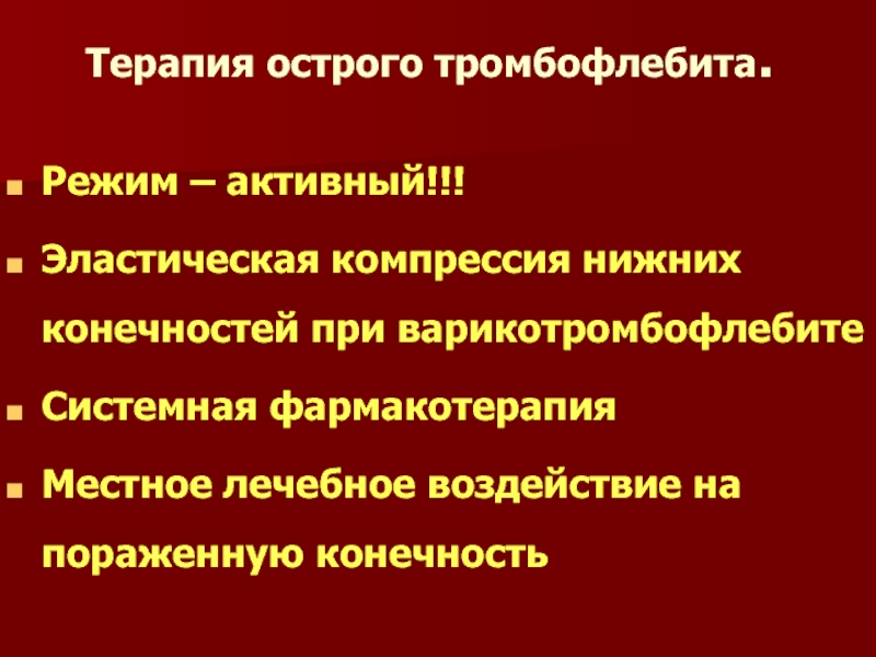 Слайд 70Терапия острого тромбофлебита.
