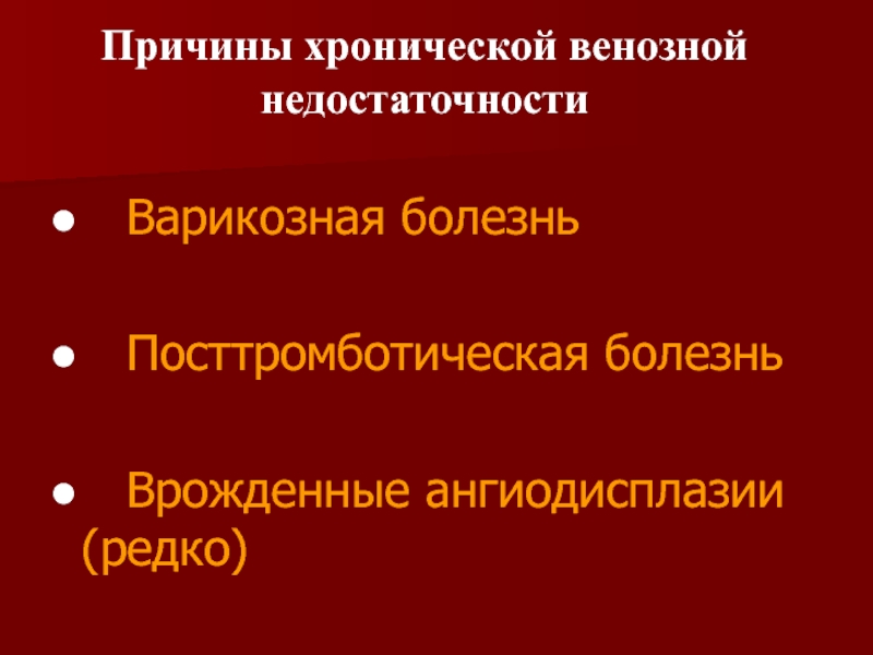 Причины хронической венозной недостаточности