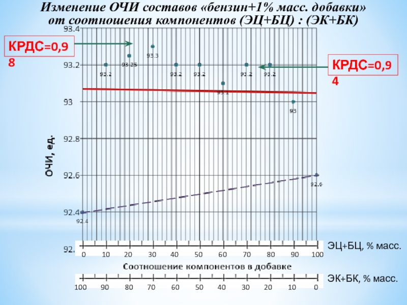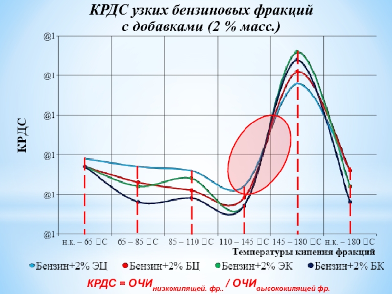 исследование влияния отдельных компонентов композиционного состава оксигенатной добавки на коэффициент распределения детонационной стойкости (КРДС) в узких бензиновых фракциях моторных топлив;