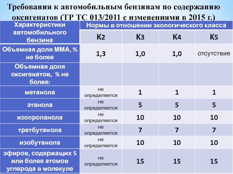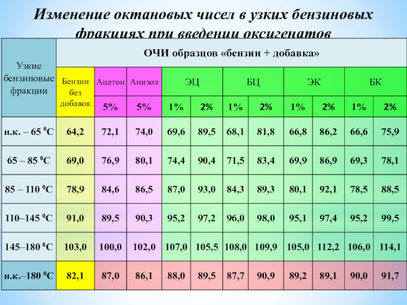 оценка эффективности оксигенатных добавок к бензинам и их узким