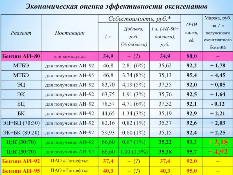 оценка технико-технологической и экономической эффективности разработанной антидетонационной добавки.