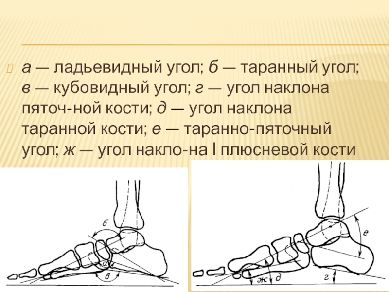 кубовидный угол; г — угол наклона пяточ-ной кости; д —