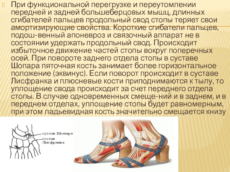 Слайд 10При функциональной перегрузке и переутомлении передней и задней большеберцовых мышц,
